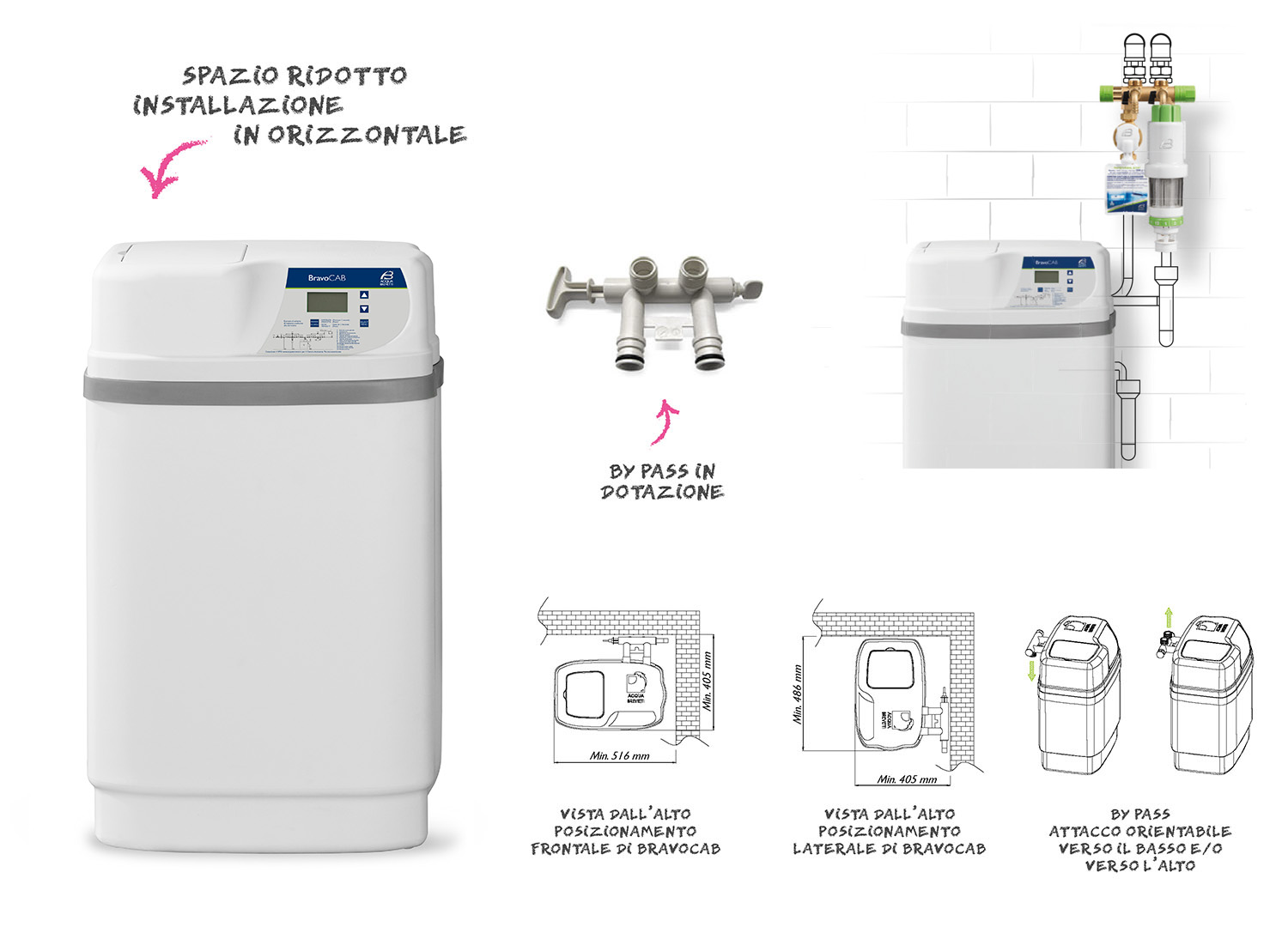 Acqua brevetti pacchetto addolcitore BravoCAB START 11: Filtro autopulente BravoFIL ¾” + Addolcitore BravoCAB 11 + Pompa dosatrice BravaDOS ¾” + AcquaSIL 20/40® Kg.1